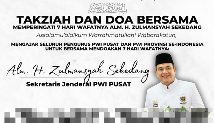 Ketua Umum PWI Pusat, Akhmad Munir, telah mengajak seluruh pengurus dan anggota untuk hadir dan bersama-sama mendoakan almarhum Zulmansyah Sekedang. Dalam pernyataannya, beliau menekankan pentingnya kehadiran semua pihak untuk menjadikan acara ini sebagai bentuk penghormatan yang layak bagi sosok yang telah berjuang untuk kemajuan organisasi dan profesi jurnalistik.